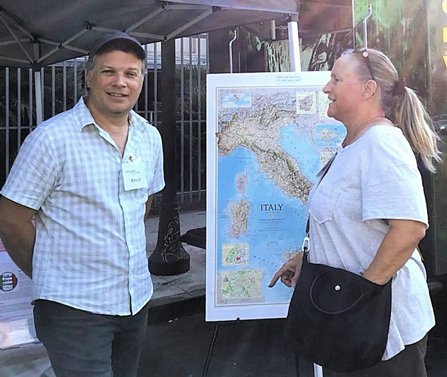 Braving an unseasonably hot weekend in early October, several SCGS Italian Interest Group (IGG) members participated in the 2024 Los Angeles Italian Festival in Hollywood. IGG volunteers staffed an information booth about the Southern California Genealogical Society and the Italian Interest Group, while encouraging festival attendees to place pins on a map of Italy indicating the towns of origin of their Italian ancestors. Numerous guests participated in